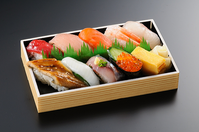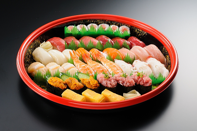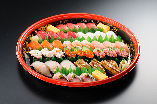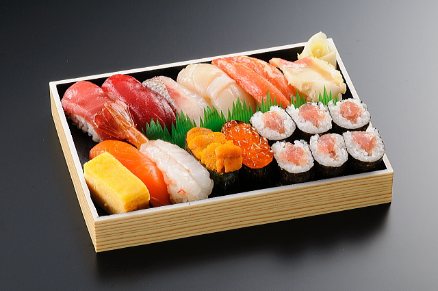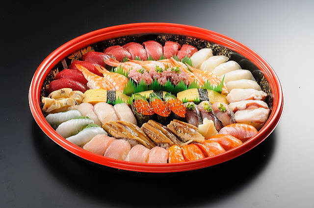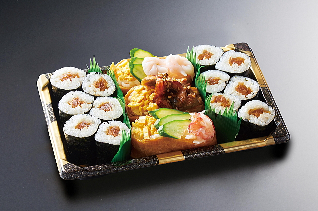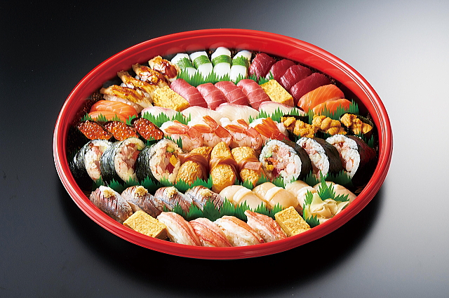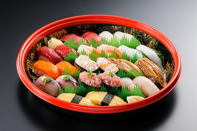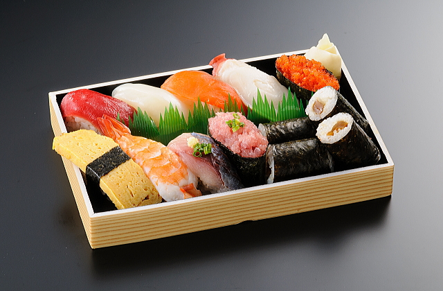 天然まぐろ赤身・真いか・サーモン・煮たこ・とびっこ・自家製玉子・海老・おすすめ光物・ねぎとろ・かんぴょう巻