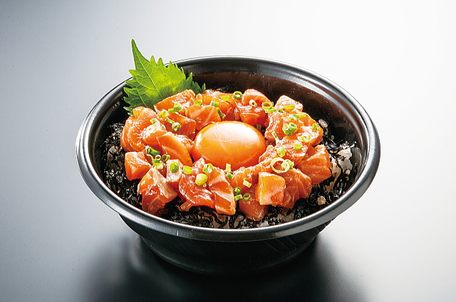 サーモン・卵黄 (自家製にんにく醤油ダレ)