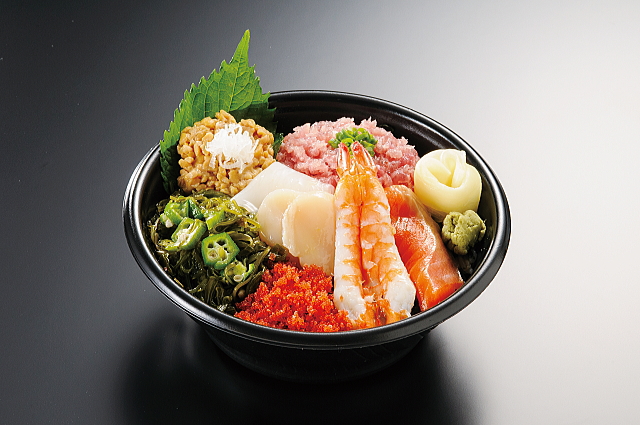 サーモン・生ほたて・真いか・海老・ねぎとろ・とびっこ・納豆・めかぶおくら