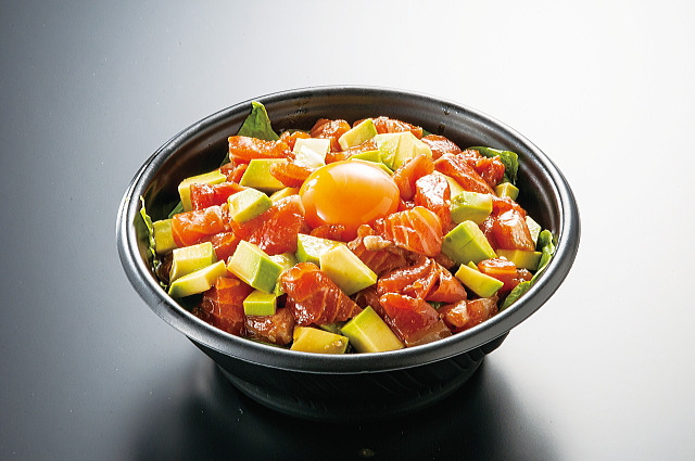 サーモン・アボカド・卵黄(自家製にんにく醤油ダレ)